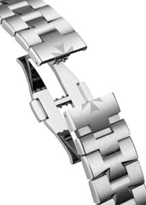 自動巻きキャリバー2460 R31L/2(Hallmark of Geneva認定)を搭載し、パワーリザーブは約40時間、厚さは10.48mm。防水性能は5気圧(50m)と控えめですが、透明なサファイアバックで美しいムーブメントを鑑賞できます。
