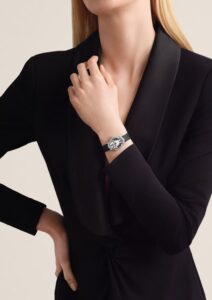 両モデルに搭載されているキャリバー1055は、わずか15.7mmの直径に115個の部品を収めた超小型高精度ムーブメント。手巻きならではの薄さ(厚さ2.1mm)で、ジュエリー感を損なわずに機械式時計としての魅力を実現しています。