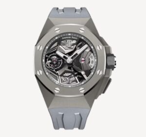 オーデマ ピゲの「ロイヤル オーク コンセプト・フライング トゥールビヨン GMT」は、9時位置にフライング トゥールビヨン、3時位置に第2時間帯表示を備えたモデルです。手巻きキャリバー2954を搭載し、約10日間のパワーリザーブを実現しています。新デザインのブリッジやアシンメトリックな外観が特徴で、ブランドの革新性を体現しています。