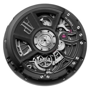 このムーブメントの最大の特徴は、フライング トゥールビヨンとフライバック クロノグラフ機能の組み合わせです。フライング トゥールビヨンは、重力の影響を軽減し、時計の精度を向上させます。フライバック クロノグラフは、リセットと同時に再計測が可能で、スポーツシーンなどでの利便性が高まります。