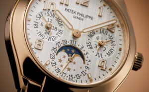 上品なローズゴールド、洗練されたダイヤル仕上げ、そしてキャリバー240 Qという名機の搭載。どの要素を取っても、パテックフィリップならではのクラフトマンシップが光る逸品です。