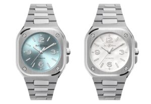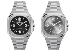 BR‑05シリーズの特徴は、角型のケースに丸型の文字盤を組み合わせたインダストリアルな造形美と、ケースとブレスレットが一体化した洗練されたフォルム。これまでのモデルは40mmサイズが主流でしたが、2025年新作として発表された「BR‑05 36 MM」は、より装着感とユニセックス性に配慮したコンパクトな進化形です。