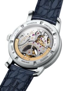 このモデルには、新開発の自社製キャリバー2162 QP/270が搭載されています。このムーブメントは、2018年に発表されたキャリバー2160をベースに開発され、厚さ6.55mmという薄型設計ながら、トゥールビヨンとパーペチュアルカレンダーという2つの複雑機構を統合しています。また、ペリフェラルローターを採用することで、ムーブメントの美しい仕上げをケースバックから鑑賞することができます。