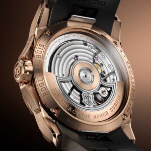 搭載されている自社製ムーブメントCal.RD840は、自動巻きで約72時間のパワーリザーブを誇ります。ジュネーブ・シール認定を受けたこのムーブメントは、手作業による装飾およびポリッシュ仕上げが施されており、ローターには1996年のモデルを現代風にアレンジしたデザインが採用されています。また、ロジェ・デュブイの共同創設者ふたりの言葉が刻まれています。