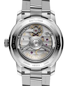 「キャリバーB31」は、ブライトリングが4年の歳月をかけて開発した自社製3針ムーブメントです。COSC認定のクロノメーターであり、78時間のパワーリザーブとフリースプラングバランスホイールを備え、高い精度と安定性を実現しています。サファイアクリスタル製のケースバックからは、美しく仕上げられたムーブメントの動きを鑑賞することができます。