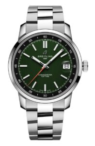 2025年、ブライトリングは新たな時代の幕開けを告げる「トップタイム B31」シリーズを発表しました。このシリーズは、ブランド初の自社製3針ムーブメント「キャリバーB31」を搭載し、クラシックなデザインと現代的な機能性を融合させています。38mmのケースサイズは、ヴィンテージの美学を現代に再解釈し、あらゆる手首にフィットするユニバーサルなサイズ感を実現しています。ダイヤルは、クラシックカーのダッシュボードクロックからインスピレーションを受けたデザインで、ブルー、グリーン、ホワイト&スカイブルーの3色展開。ブレスレットは、3連のステンレススチールまたはヴィンテージレーシンググローブを彷彿とさせるパーフォレーテッドカーフスキンストラップから選択可能です。この新作は、レトロな美学とモダンなエッジを兼ね備え、自由な精神を持つすべての人に向けたスタイルを提案しています。