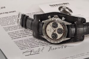 2017年10月26日、ニューヨークで開催されたフィリップスのオークションにおいて、ロレックスの「コスモグラフ デイトナ “ポール・ニューマン” Ref. 6239」が1,780万ドル(当時のレートで約20億3,100万円)で落札されました。この時計は、俳優でありレーサーでもあったポール・ニューマン氏自身が着用していたもので、その歴史的背景と希少性から高額で取引されました。