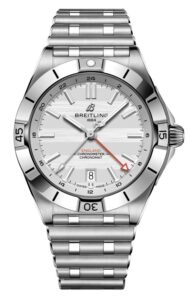 上品な光沢を持つケースと、ブライトリング伝統のルーローブレスレットが調和し、クラシカルでありながら現代的な個性を感じさせる1本です。