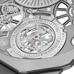 超薄型でありながらも、視覚的なインパクトや構造美を損なうことなく実現されたこのモデルは、現代の高級時計市場においても極めてユニークな存在です。また、スケルトン化されたフェイスやフライングトゥールビヨンの配置は、ブルガリならではの芸術的アプローチを体現しています。