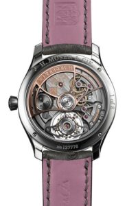 フライングトゥールビヨン:6時位置に配置され、重力の影響を最小限に抑えることで、高い精度を実現します。