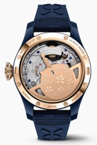 文字盤は夜空を思わせるミッドナイトブルーで統一され、針とインデックスにはスーパールミノバ加工が施されており、暗闇でも優れた視認性を確保。さらに、裏蓋のローターには『星の王子さま』の主人公が小惑星B612に立つ姿が繊細に描かれており、ファンにはたまらない演出です。このモデルは、世界限定100本のみの生産であり、希少性という点でも非常に価値の高い一本となっています。
