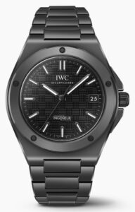 IW338903は、IWCが初めてブラックセラミックを全面的に採用したインヂュニアモデルです。ケース、ベゼル、ブレスレット、クラウン、クラウンガードに至るまで、すべてがブラックセラミックで構成されており、耐傷性と軽量性を兼ね備えています。42mmのケースサイズで、厚さは11.6mm、100mの防水性能を誇ります。ムーブメントには、ペラトン自動巻き機構を備えたIWC自社製キャリバー82110を搭載し、60時間のパワーリザーブを実現しています。