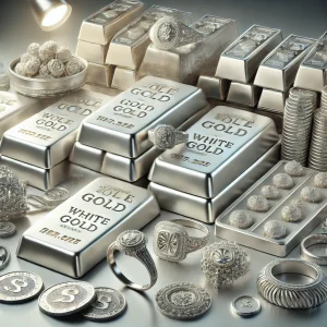 ホワイトゴールドは、金75%に銀、亜鉛、パラジウム、銅、ニッケルなどを混ぜて作られる白色の合金です。 プラチナのよう上品な輝きを持ち、耐久性にも優れています。