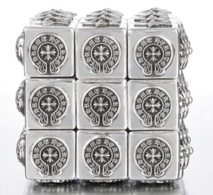 チェーンは、クロムハーツのアクセサリーにおいて重要な要素であり、連続性や結束を象徴しています。特に、クラシックリンクチェーンは、ブランドの高い技術力とデザイン性を示すモチーフとして知られています。 これらのチェーンは、ペンダントやウォレットチェーンとして使用され、その滑らかな質感と重厚感から、多くのファンにサポートされています 。
