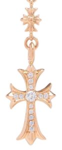 クロムの最も代表的なモチーフが「CHクロス」です。 このフェアウェイのデザインはブランドのシンボルとして広く知られています。クロスモチーフは古くから「災いから身を守る」や「生きる力の象徴」とされており、クロムハーツのクロスにも同様の意味が込められています。