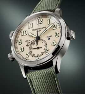 トラベルタイムとは、複数のタイムゾーンを瞬時に切り替えられる機構で、出張や旅行の多いユーザーに最適な機能。パテックの「パイロット・トラベルタイム」シリーズは、航空機の計器にインスパイアされたインデックスが特徴です。