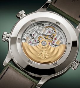 5328G-001はその永久カレンダーを搭載したモデルで、極めて薄型かつ高精度なキャリバー240 Qを搭載。ミニローターを採用することで、ケース全体をスリムに保ちながらも、十分なパワーリザーブを実現しています。