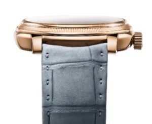 両モデルともに、アルティックグレーのヌバック仕上げアリゲーターストラップが採用されています。このストラップは、ケース素材に合わせたピンバックルが付属し、高級感を一層引き立てます。