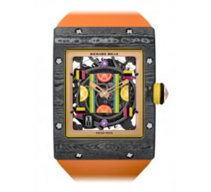 「RM 16-01 オートマティック シトロン」は、レモンとライムをモチーフにした爽やかなデザインが特徴のモデルです。四角いケースがユニークで、リシャール・ミルのアイコニックなスタイルとは異なる印象を与えます。