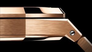 一方、同じくピンクゴールド素材を採用しているこのモデルは、ダイヤルにブラックを採用しています。グランド・タペストリー模様はそのままに、黒の深みが加わることで、より引き締まった印象となります。ブルー文字盤と比べると、落ち着きと重厚感が強く、シーンを選ばず着用できる汎用性の高さが魅力です。ブラックダイヤルは、ピンクゴールドとのコントラストが際立つため、手元での存在感も抜群です。