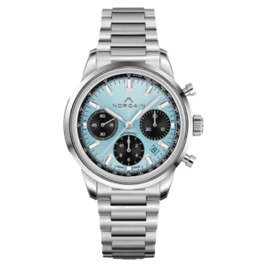 スイスの定番ブランド「ノルケイン」から登場した限定モデル。 クラシックなデザインにアイスブルーの文字盤が絶妙にマッチしています。 クロノグラフ機能を搭載し、スポーティーなデザインと重厚な雰囲気を両立したモデルとして注目されています。