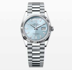 アイスブルー文字盤の時計は、高級ブランドが採用する特別なカラーです。 特にロレックスの「プラチナモデル」にはアイスブルー文字盤が採用されることが多く、限定モデルとして登場することもあります。 そのため、希少性が高く、将来的な資産価値の向上も期待できます。