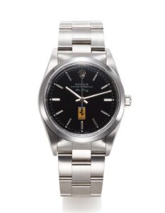 フェラーリとのダブルネームモデルは、メインにエアキングRef.14000がベースとなっています。シンプルなオールステンレスケースに、文字盤のフェラーリエンムブレが映えるデザインが特徴です。この特別なモデルは、フェラーリチーム関係者向けに製作されたものや、特定のイベントで授与されたものがあるとされています。