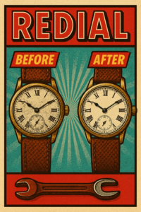 アンティークウォッチに関心がある方なら、一度は聞いたことがある「リダン文字盤」。でも、その意味や評価への影響をきちんと理解している人は意外と少ないかもしれません。この記事では、リダン文字盤とは何か、なぜそれが時計の価値に関係するのかを初心者向けにわかりやすく解説します。