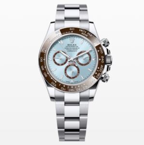 このモデルは、2023年にデイトナ誕生60周年を記念して発表され、プラチナ製ケースとアイスブルーの文字盤が特徴です。 さらに、プロフェッショナルウォッチとして初めてシースルーバックを採用し、新型ムーブメント「キャリバー4131」の動きを鑑賞できる点も魅力となっています。