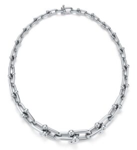 ティファニーの「グラジュエイテッドリンクネックレス」は、ハードウェアコレクションの中でも存在感のあるデザインが魅力です。大小のリンクが連続して連なることで、モダンで都会的な印象を演出。男女問わず愛されるユニセックスなデザインで、スタイルの主役になる一品です。