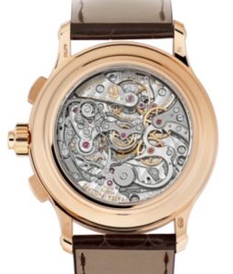 Ref.5308G-001は、ミニッツリピーター、ワンプッシュスプリットセコンドクロノグラフ、瞬時日送り式永久カレンダーを搭載した「カドラプル・コンプリケーション」です。2023年に発表されたプラチナケースのRef.5308Pに続く、18Kホワイトゴールドケースの新バージョンとなります。