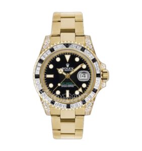 ロレックスの「116758SANR」は、GMT-Master IIの中でも特別な装飾を施した、極めて豪華なモデルです。素材には18Kイエローゴールドを使用し、鮮やかな黄金色が持つ輝きと重厚感が、所有者に一目置かれる存在感を与えます。