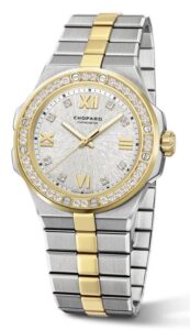 ショパールの人気スポーツウォッチコレクション「アルパイン イーグル」に、2025年新作として登場した「アルパイン イーグル 33」Ref. 298617‑4001。直径33mmの女性向けサイズながら、初めてルーセントスティール™と18Kエシカルイエローゴールドが組み合わされたバイカラーデザインで登場します。ヴァルスグレーの文字盤やダイヤモンドセッティングなど、優雅な仕上がりから目が離せない一品です。